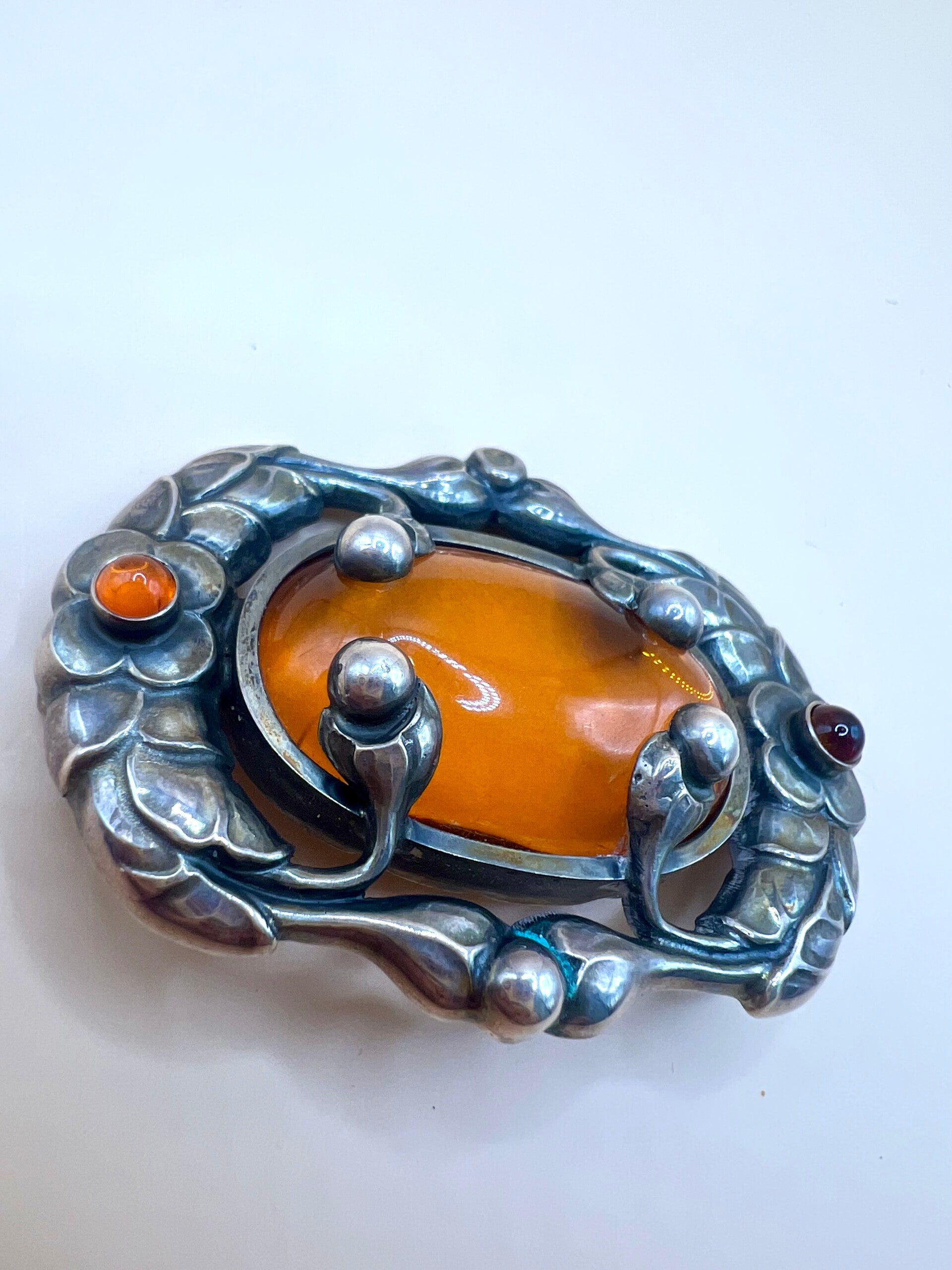 Broche Georg Jensen n°169 – Argent & Ambre